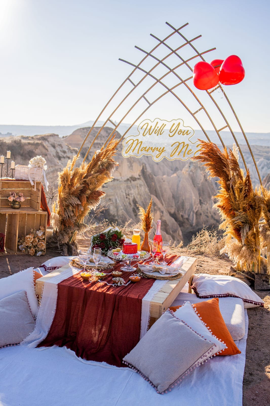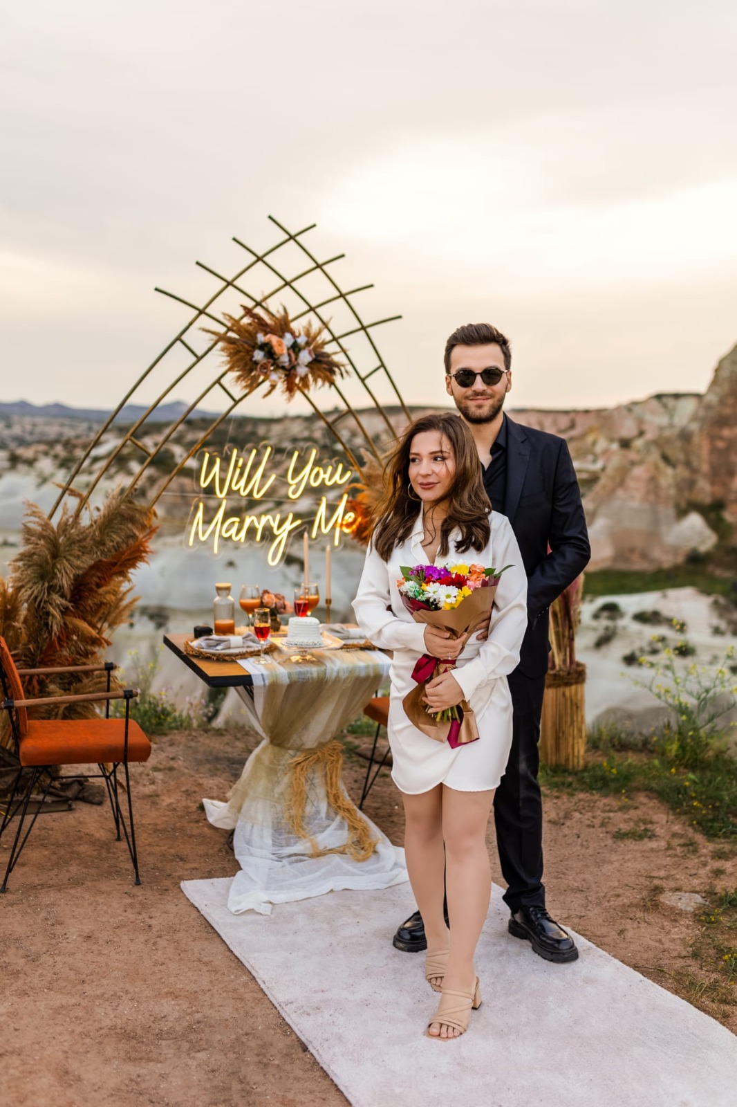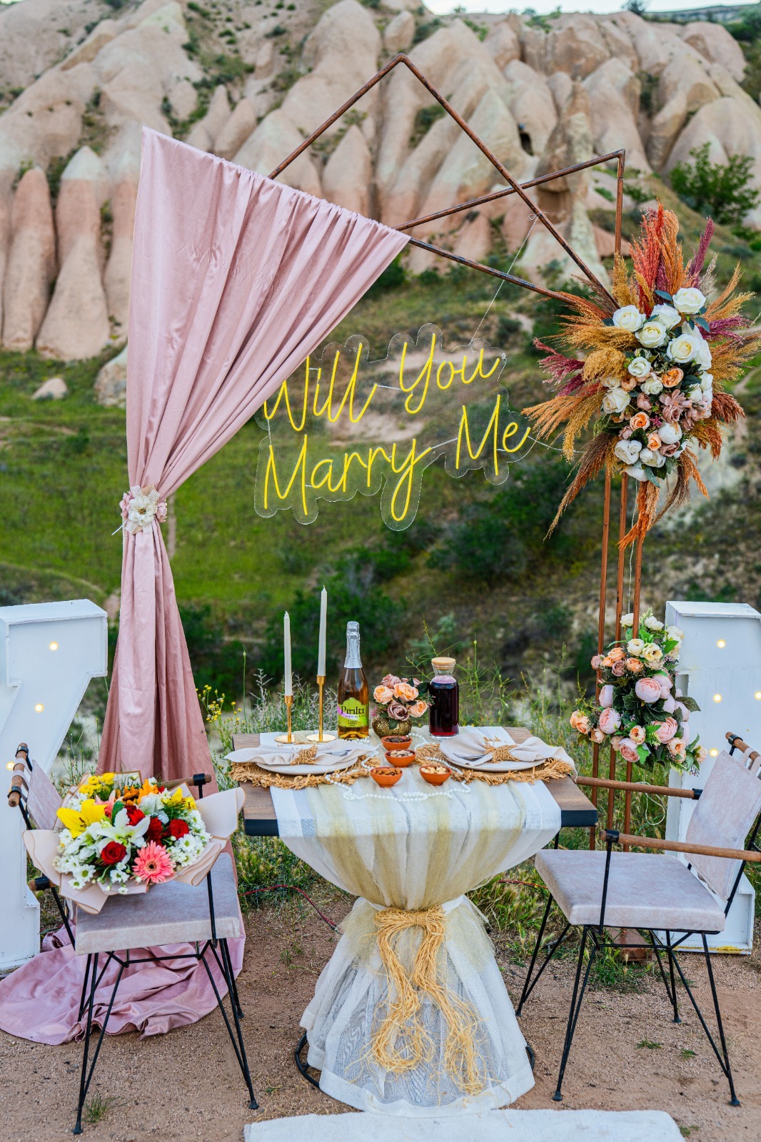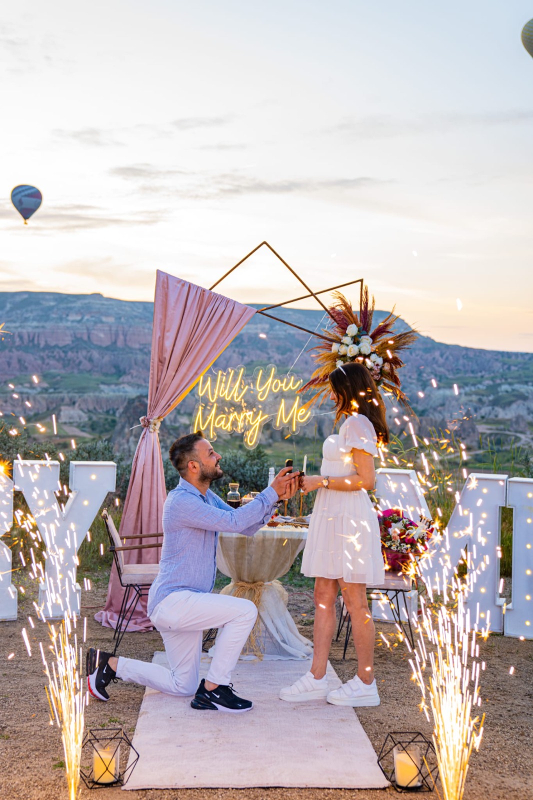 Your proposal begins with a carefully planned setup at a stunning location. Our team will assist in creating a romantic atmosphere, tailored to your vision. Whether it's a private dinner or a scenic overlook, every detail will be perfect. Capture the moment with professional photos or video, and celebrate your engagement with the elegance and personal touch you desire.